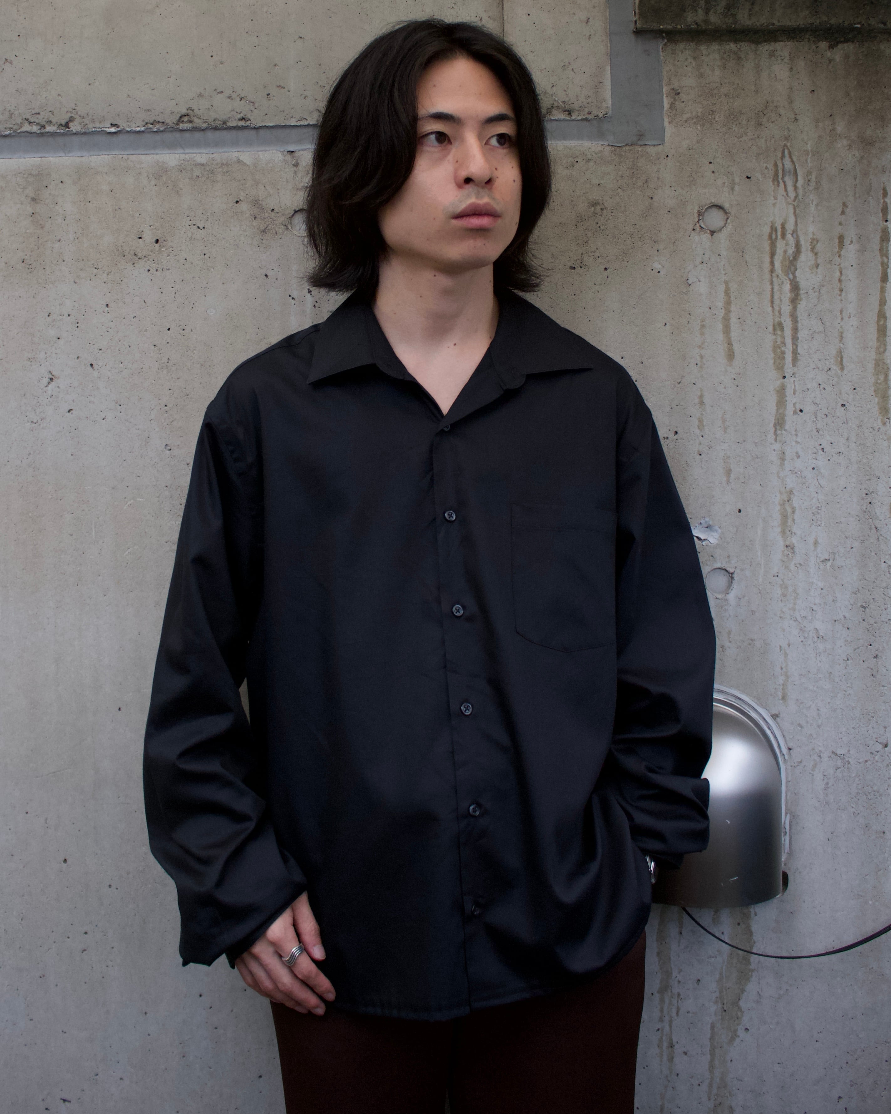 光沢感のある上品なブラックシャツ