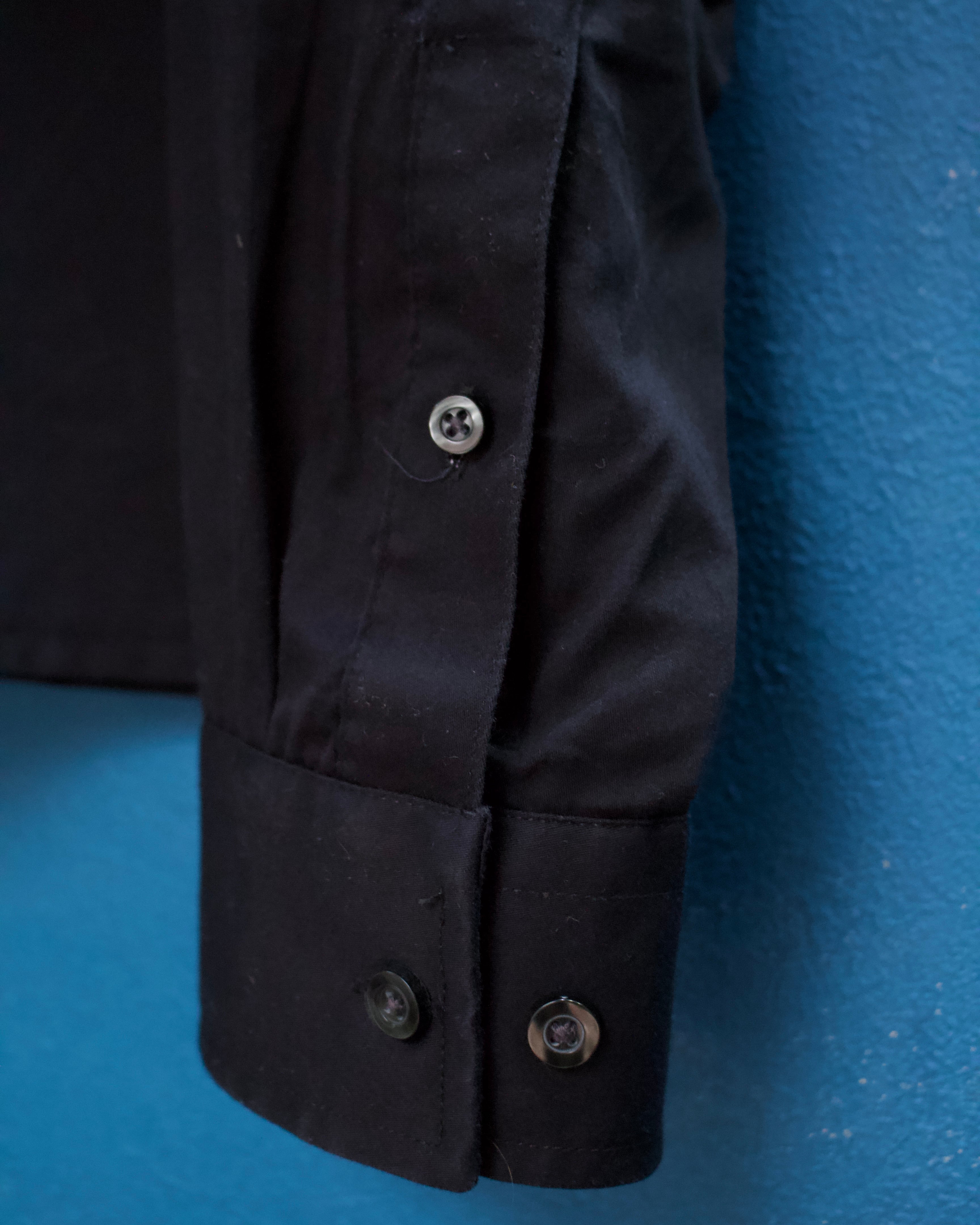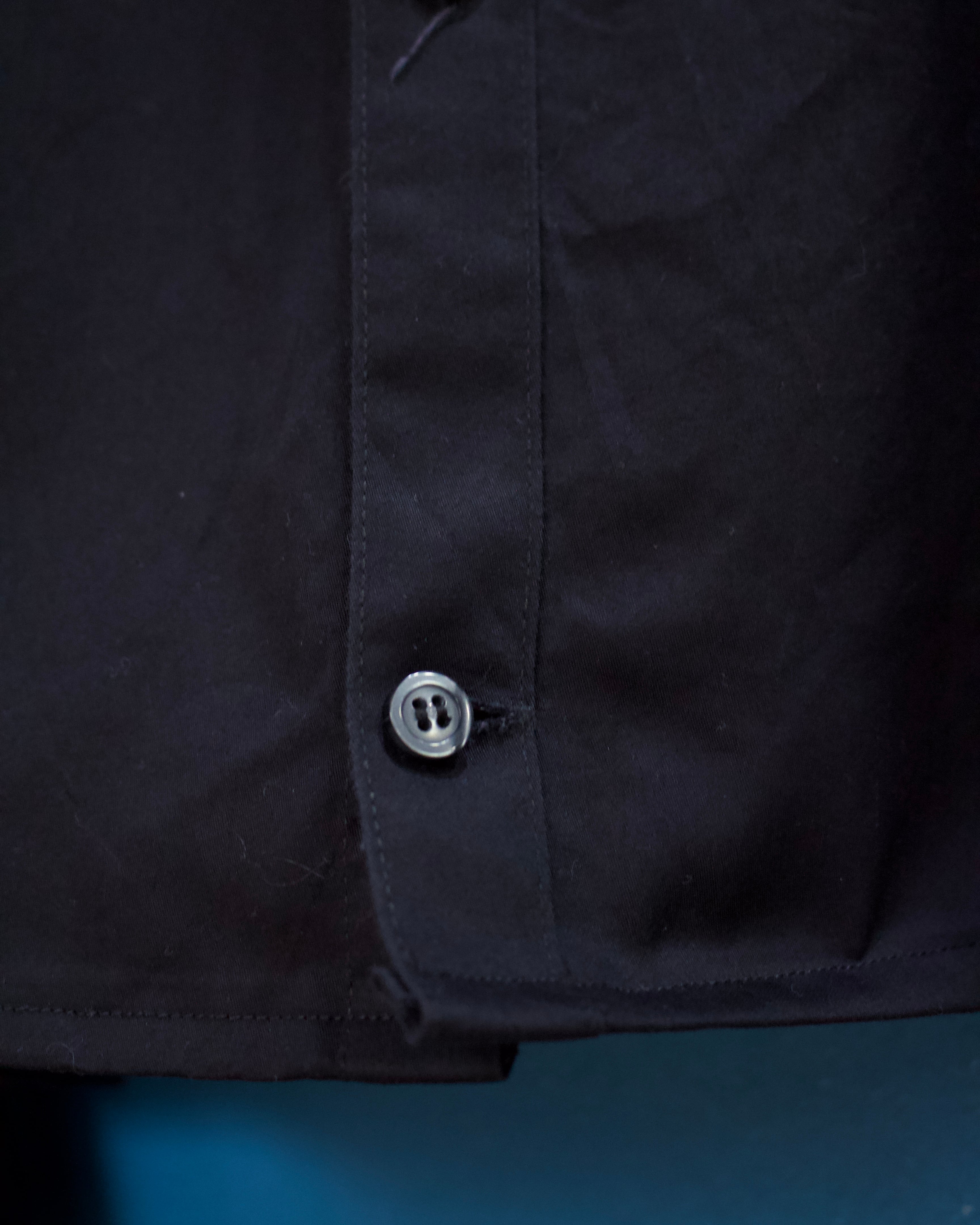 ボックスシルエットのブラック短丈シャツ