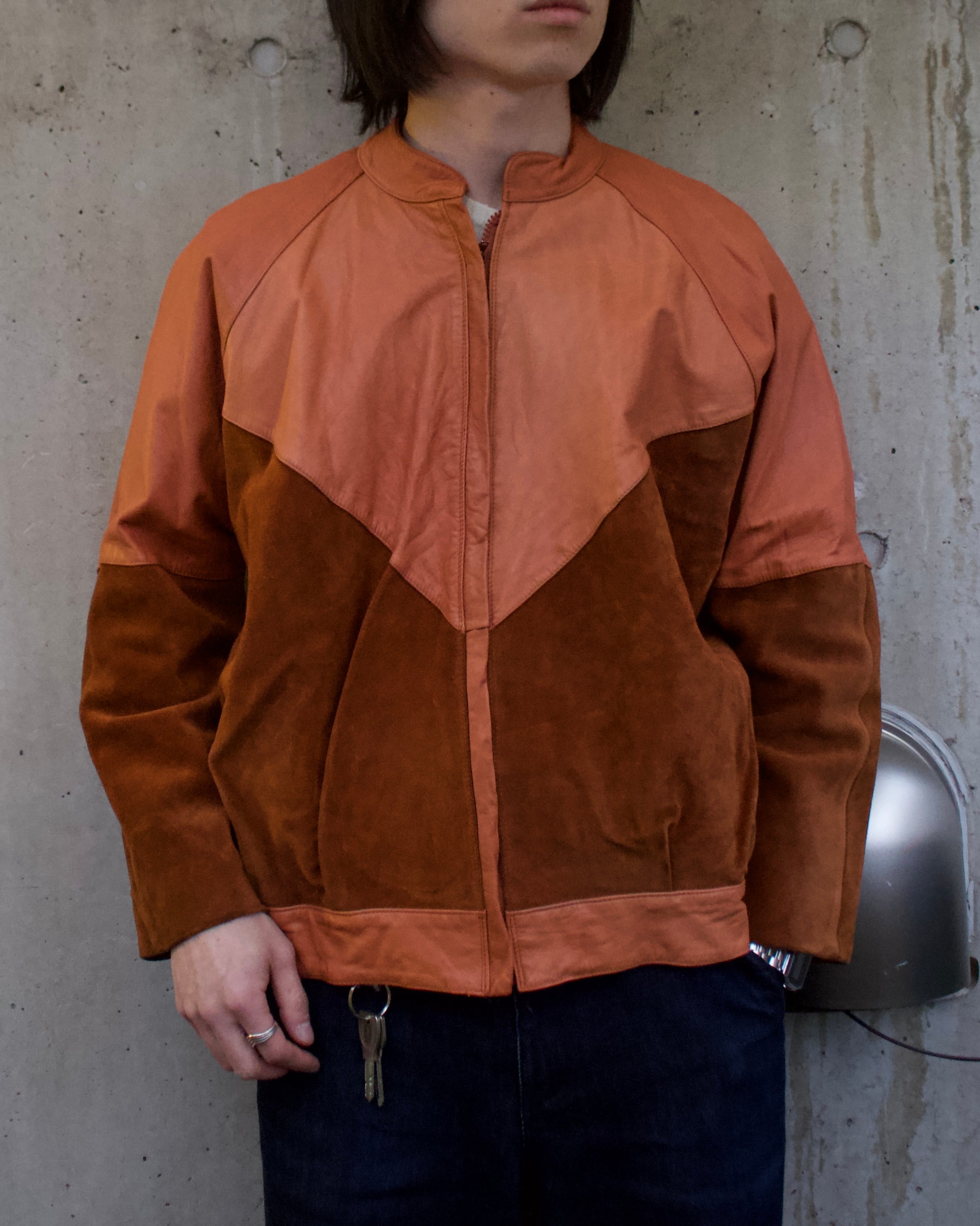 スエードとレザーのドッキングブルゾン