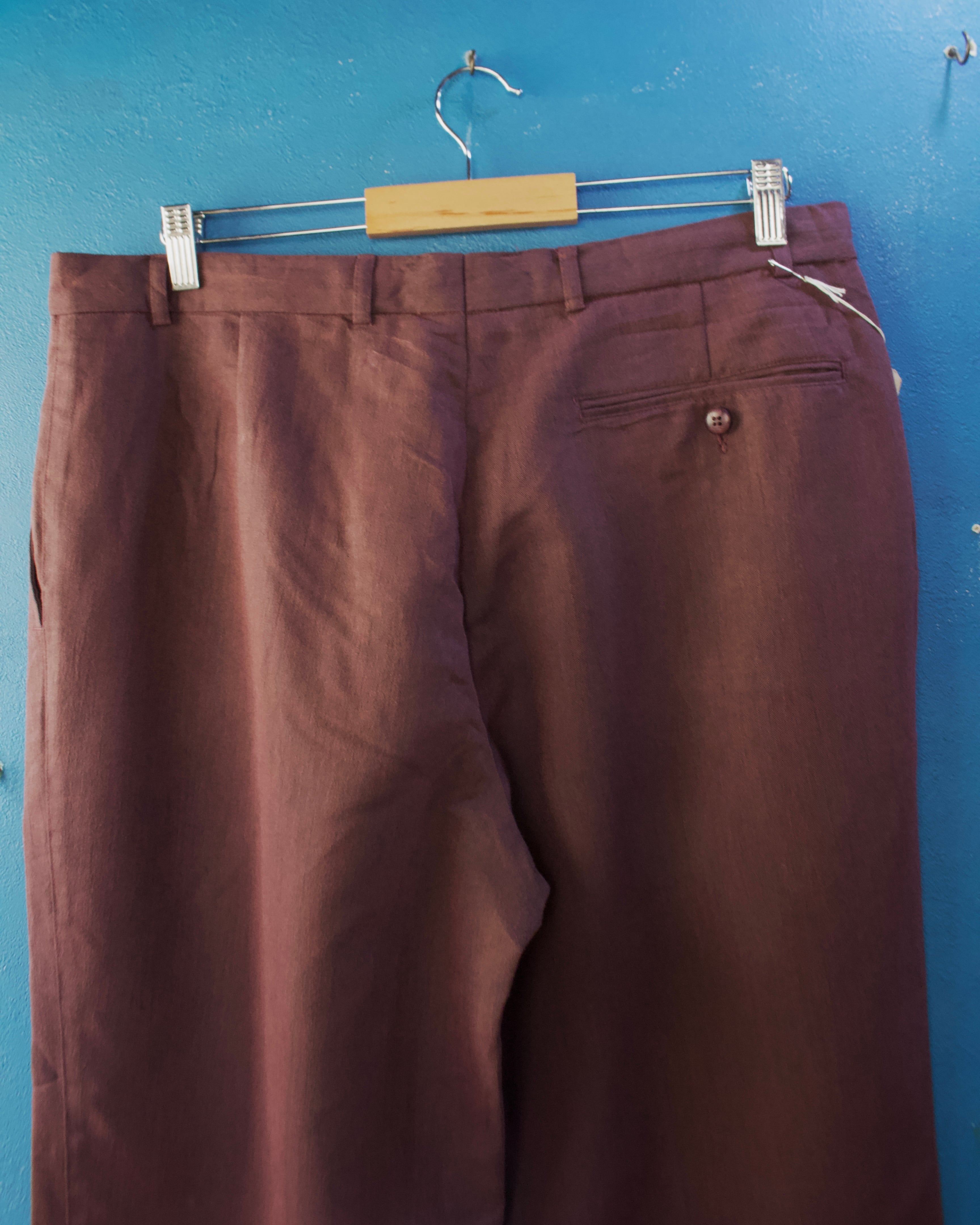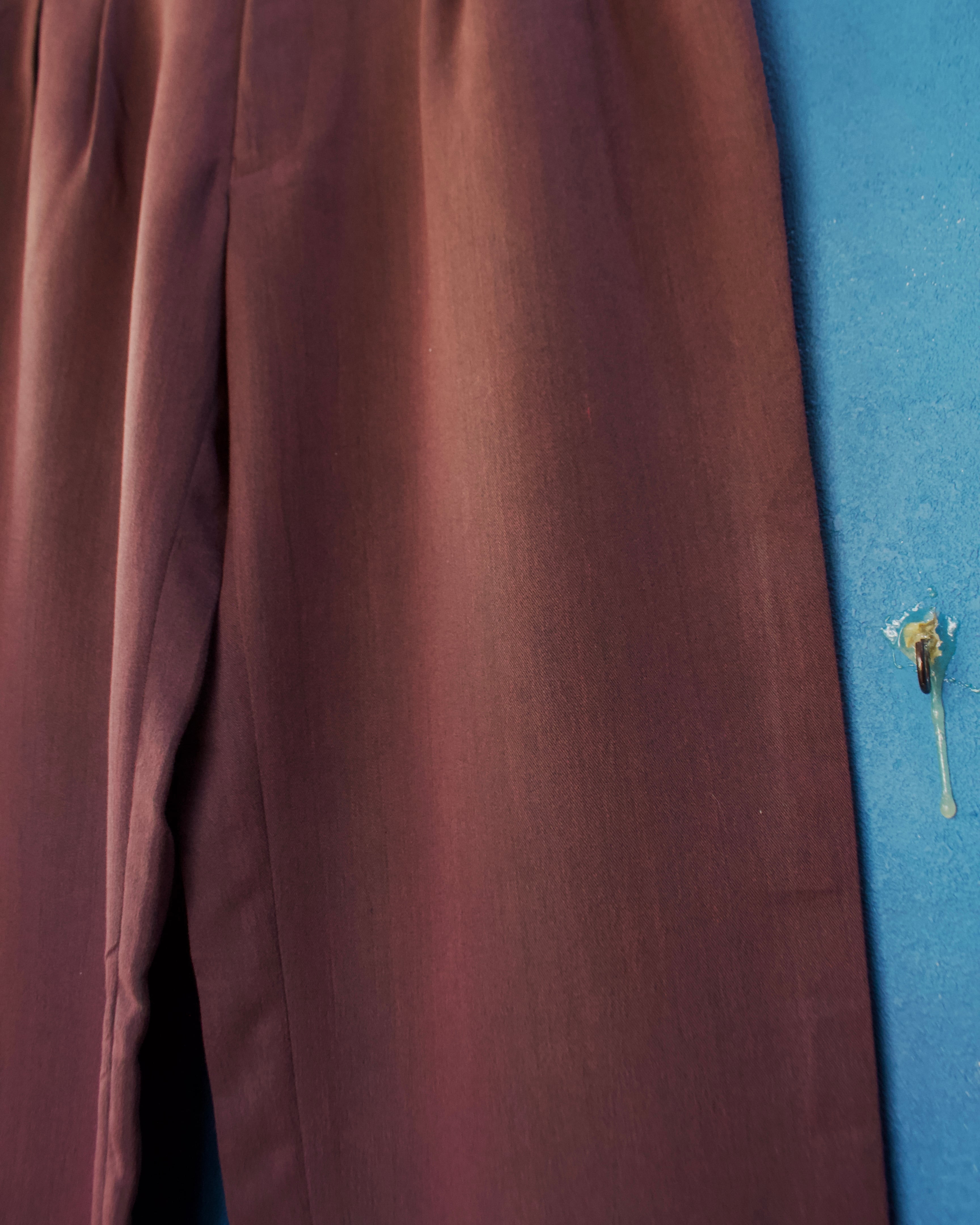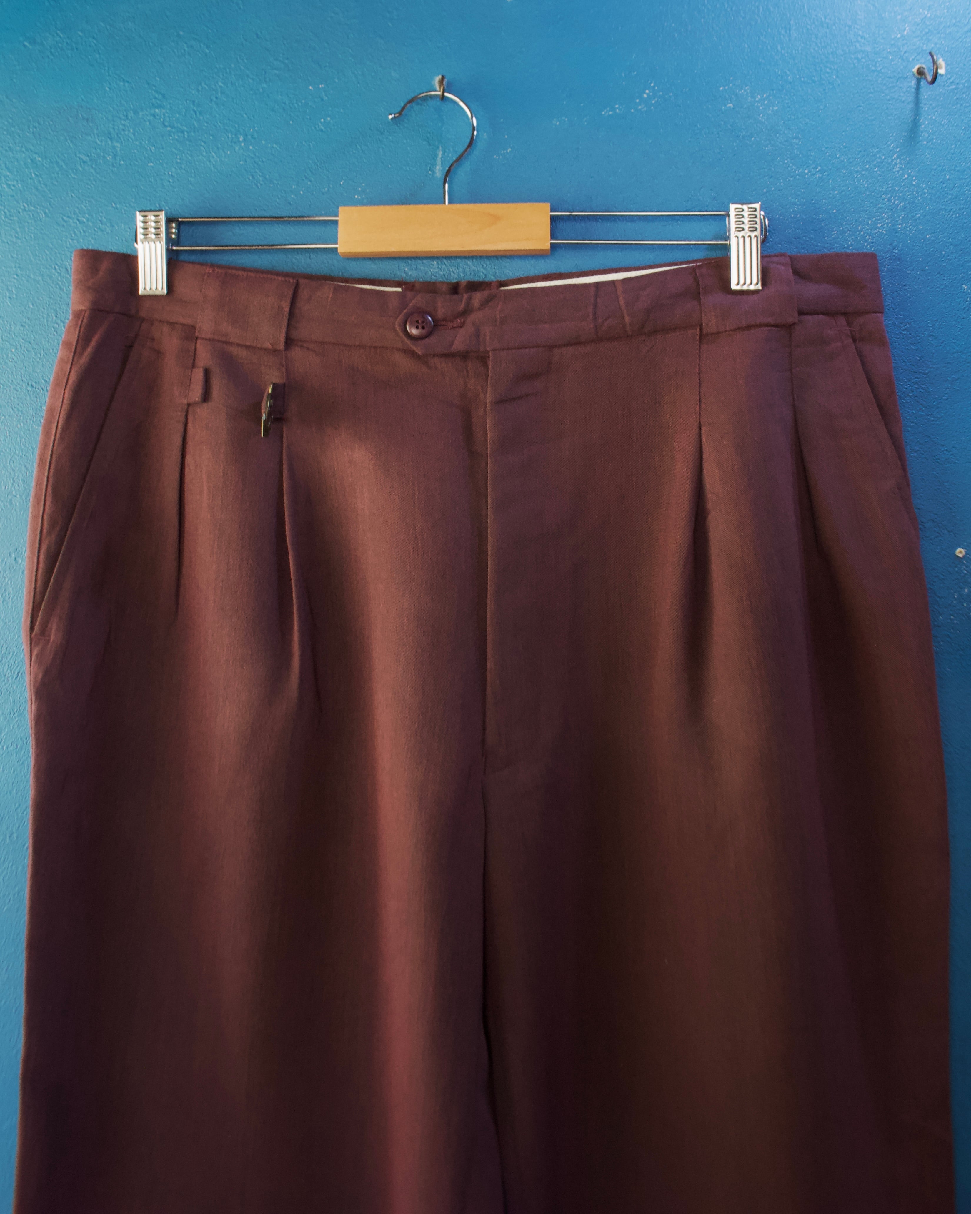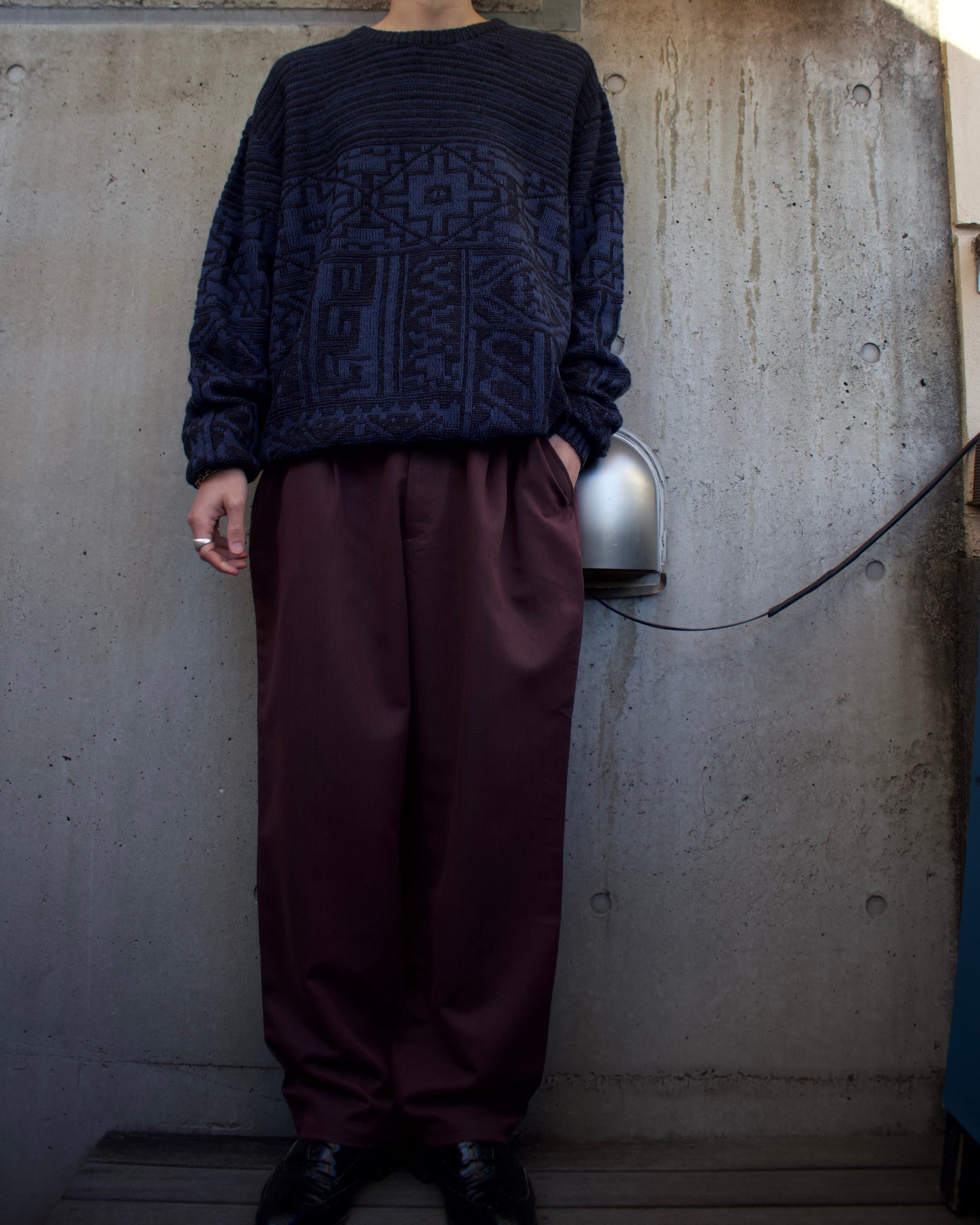 ワイドシルエットのレーヨン混紡スラックス