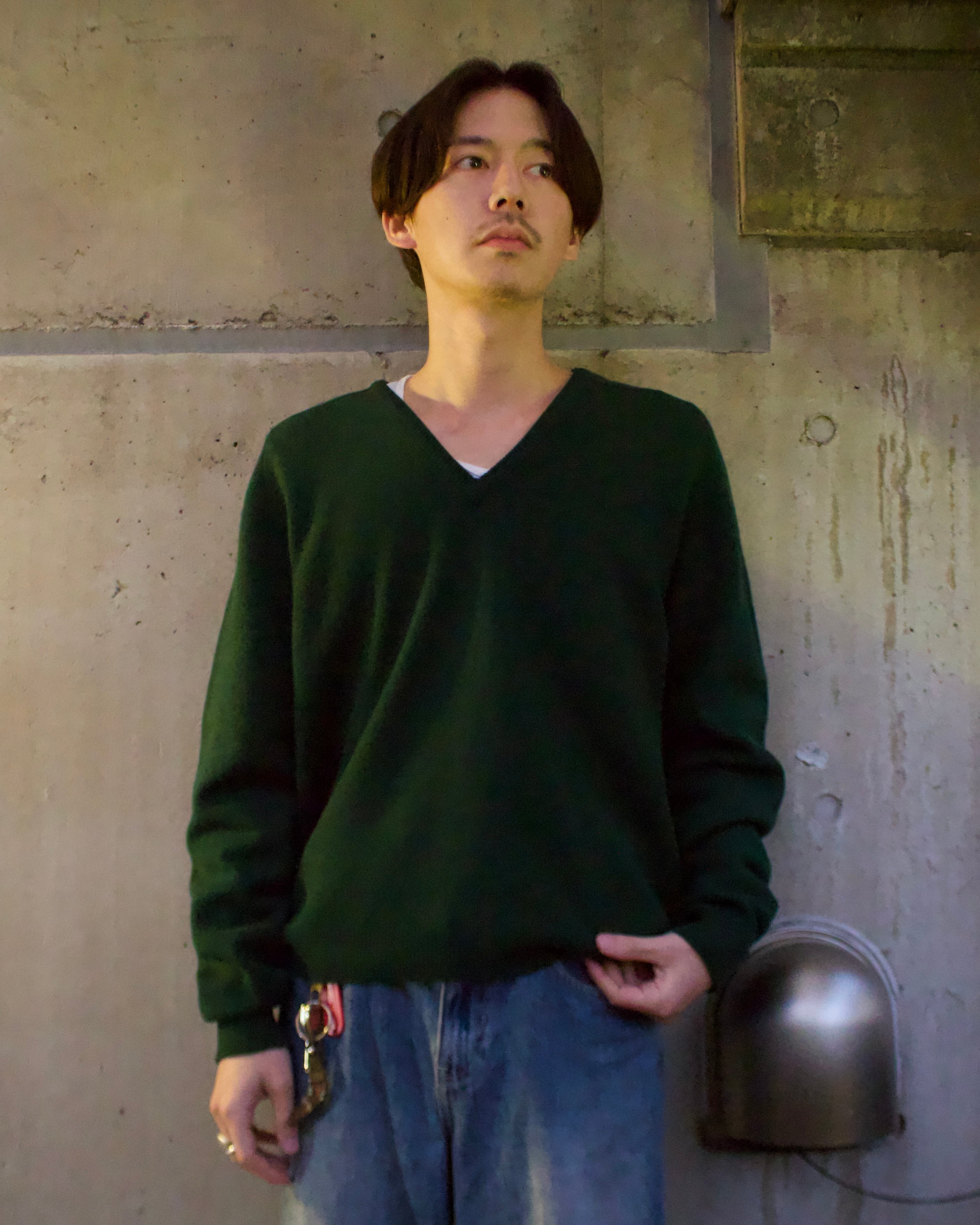 ラムウール100%使用したVネックニット