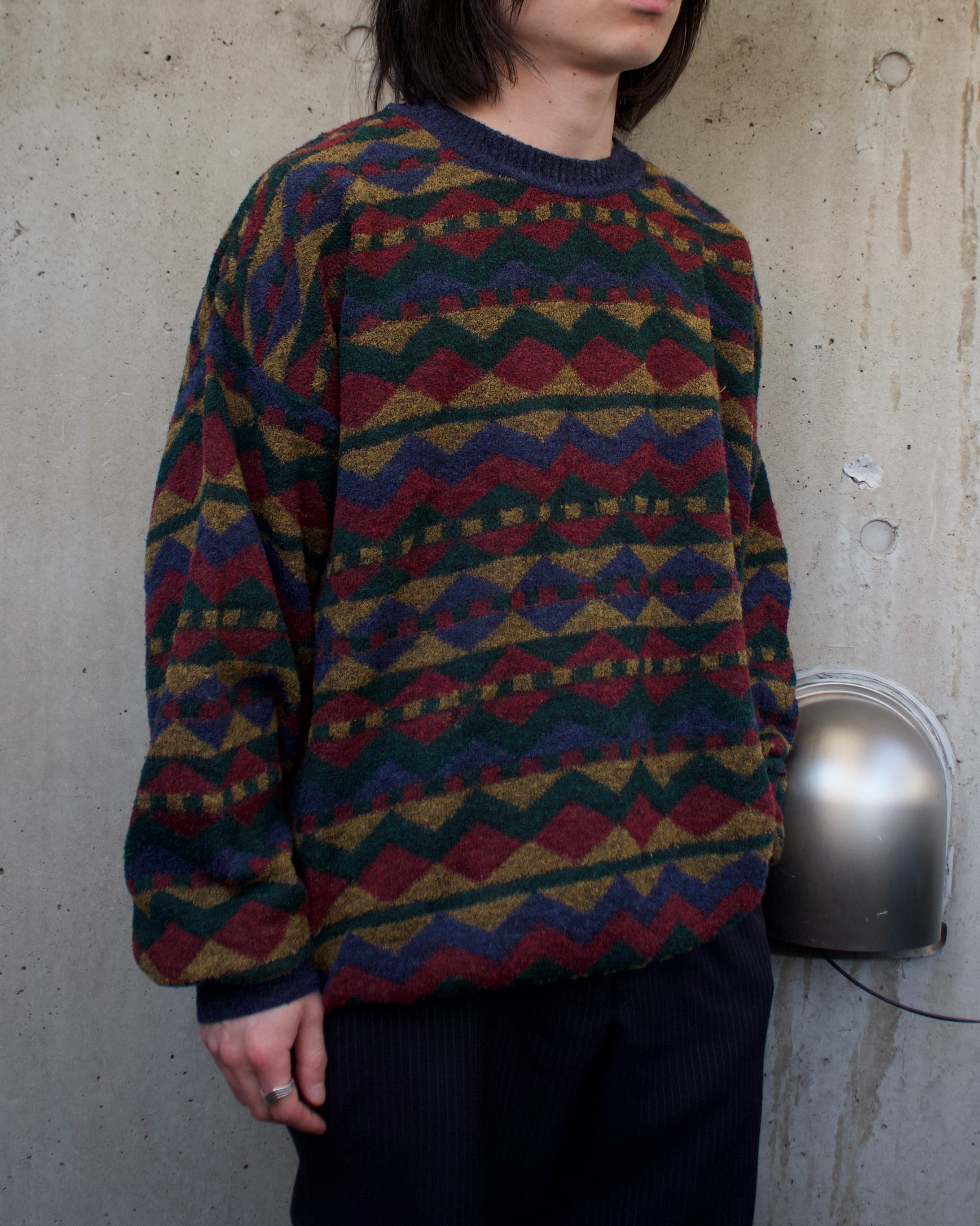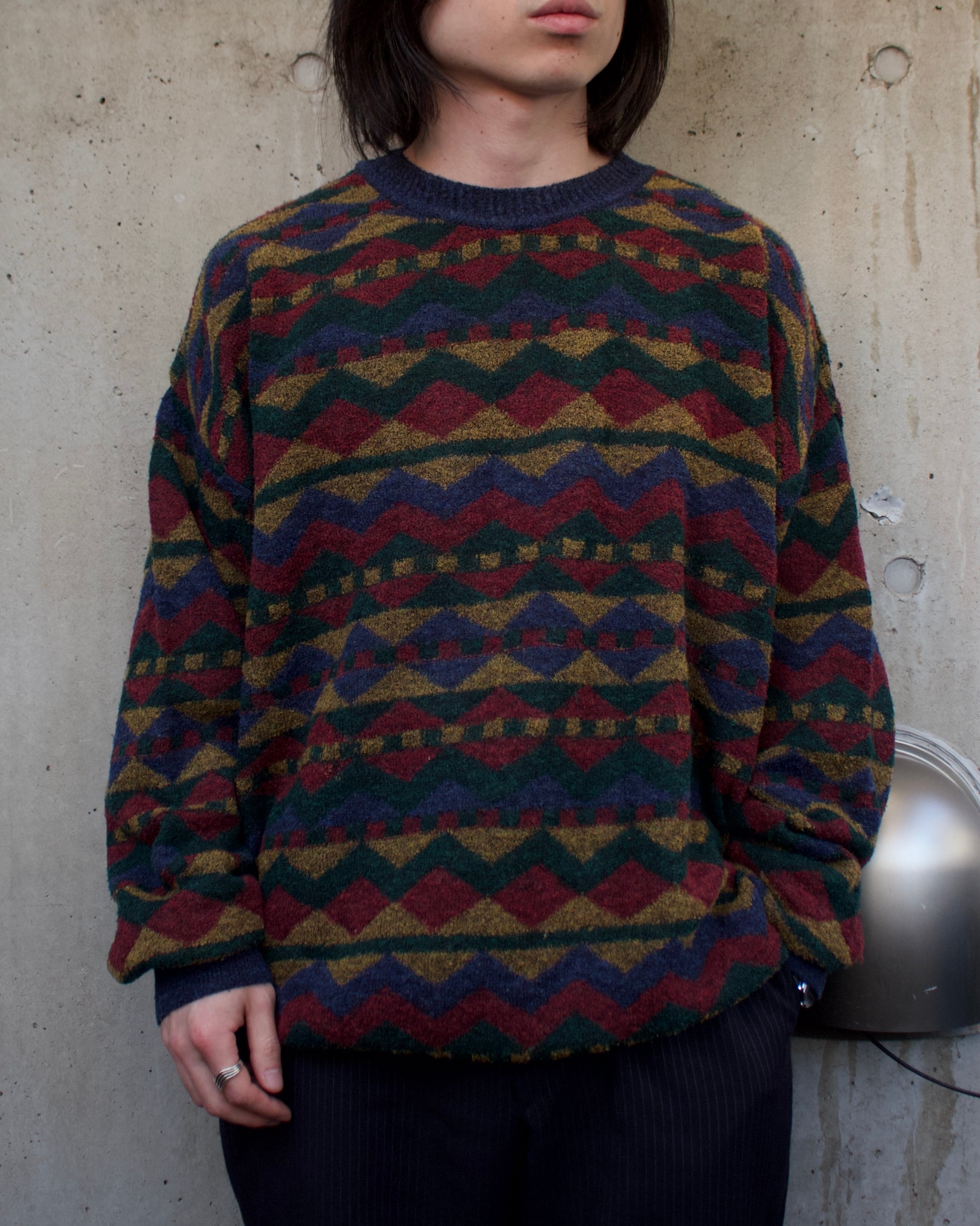 アルパカ混紡総柄ニット