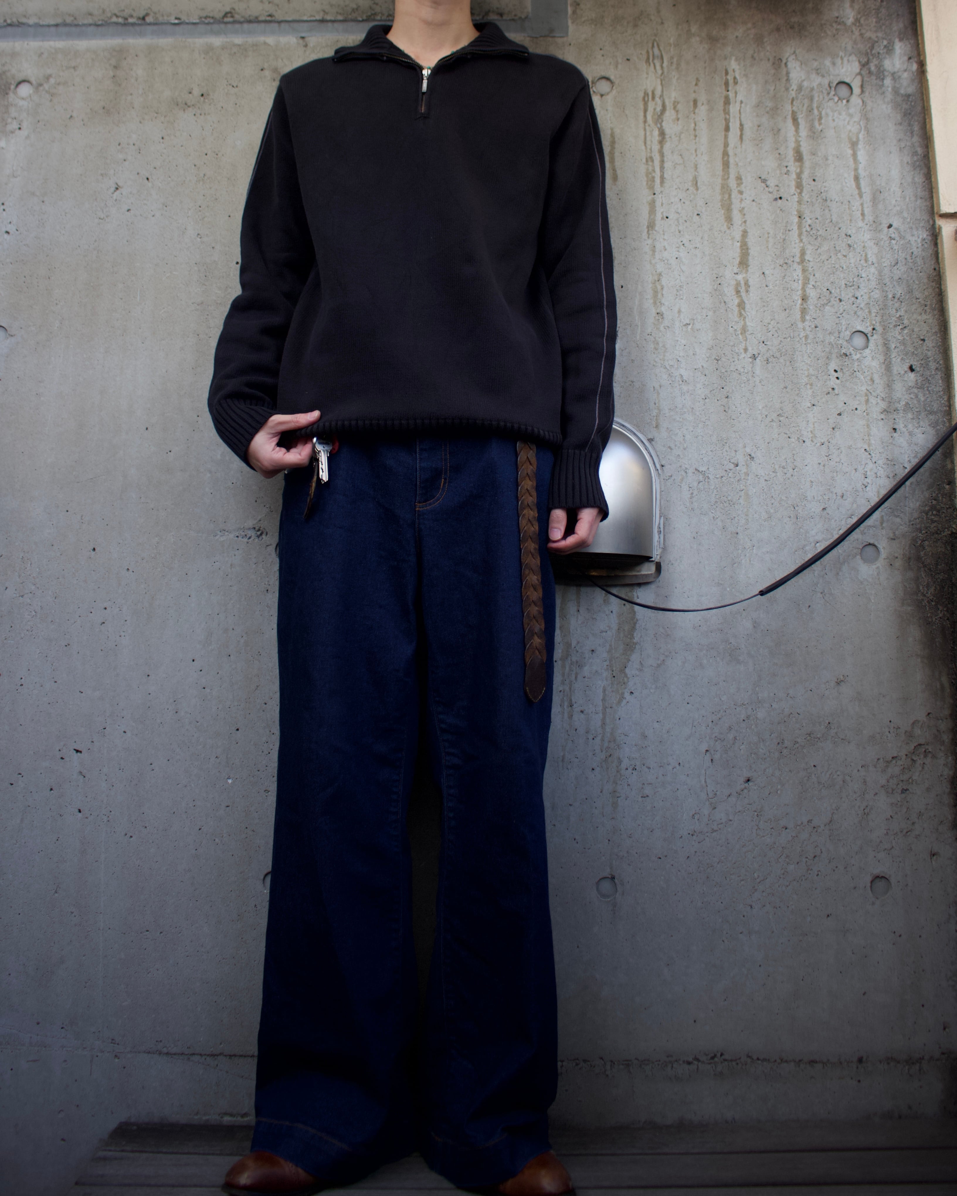 ハーフジップラインデザインニット
