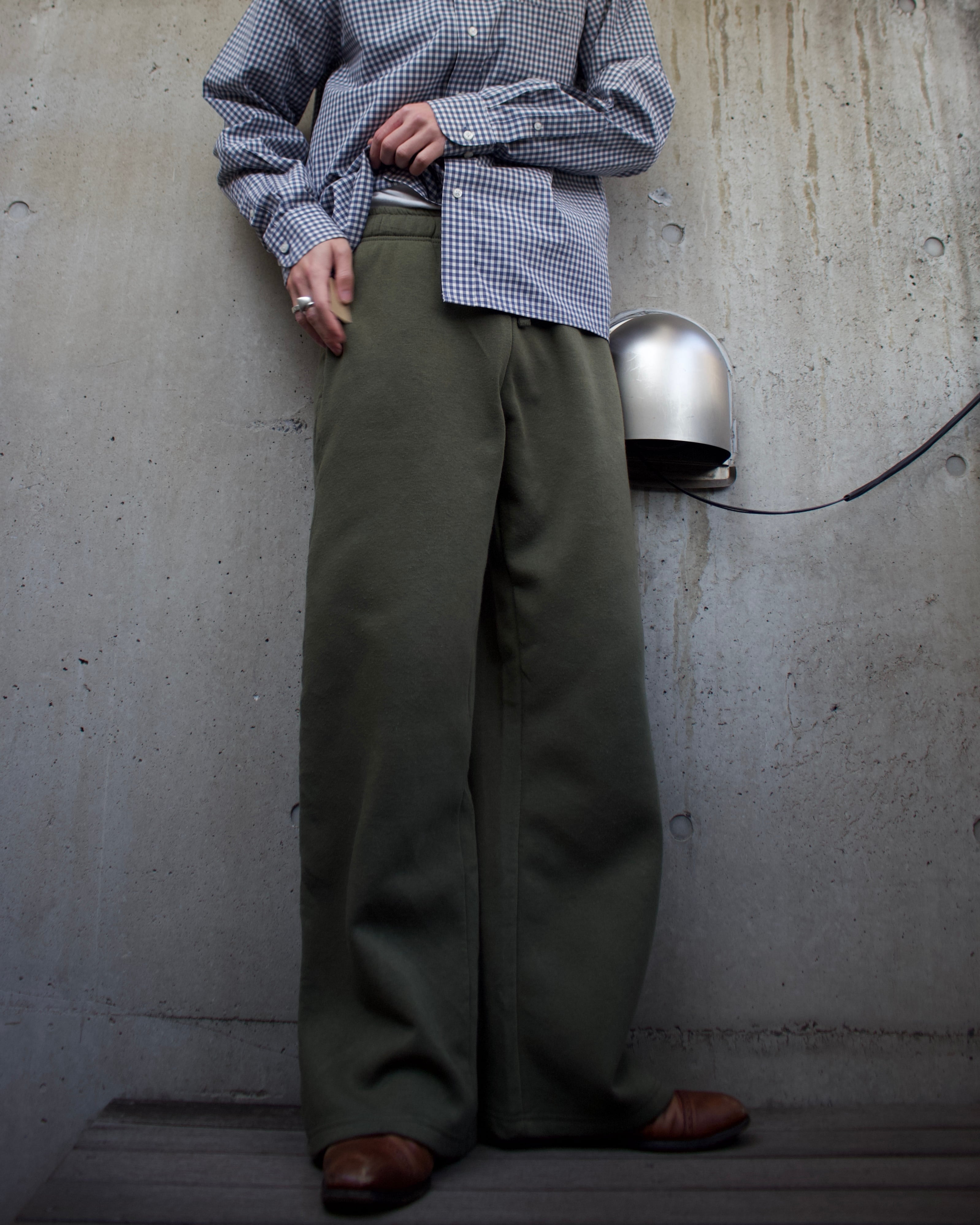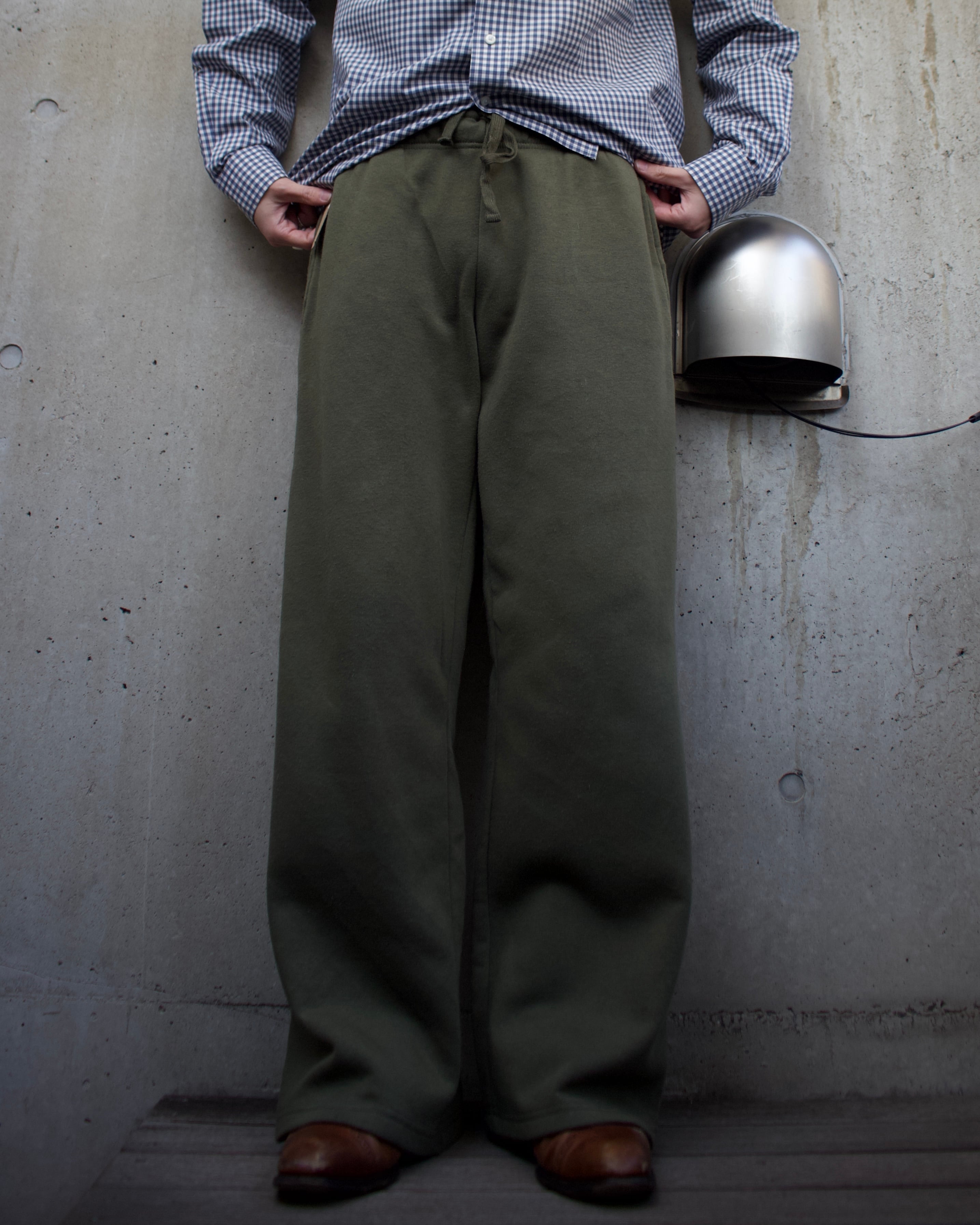 カーキカラーのスウェットパンツ