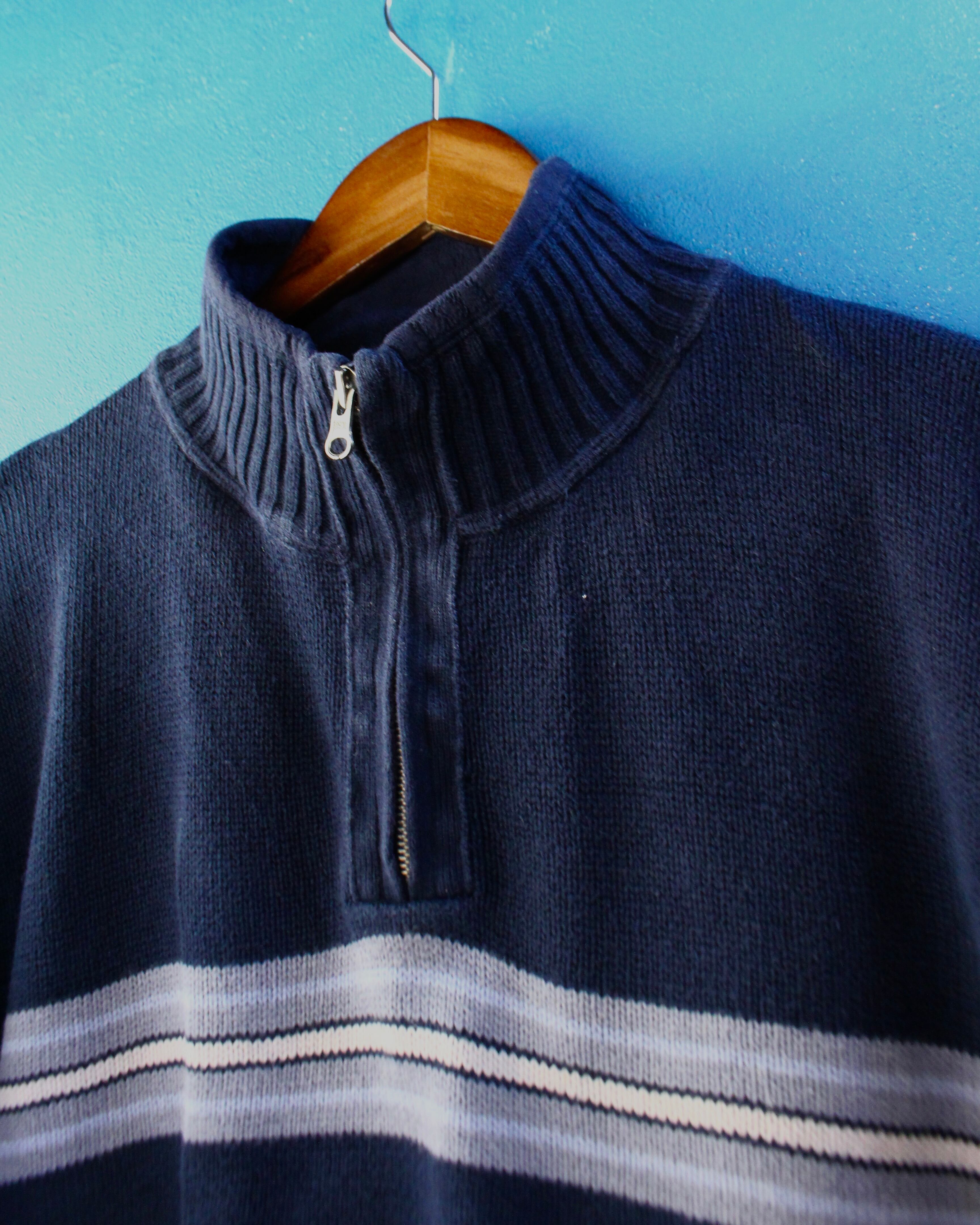 ハーフジップのフルコットンニット