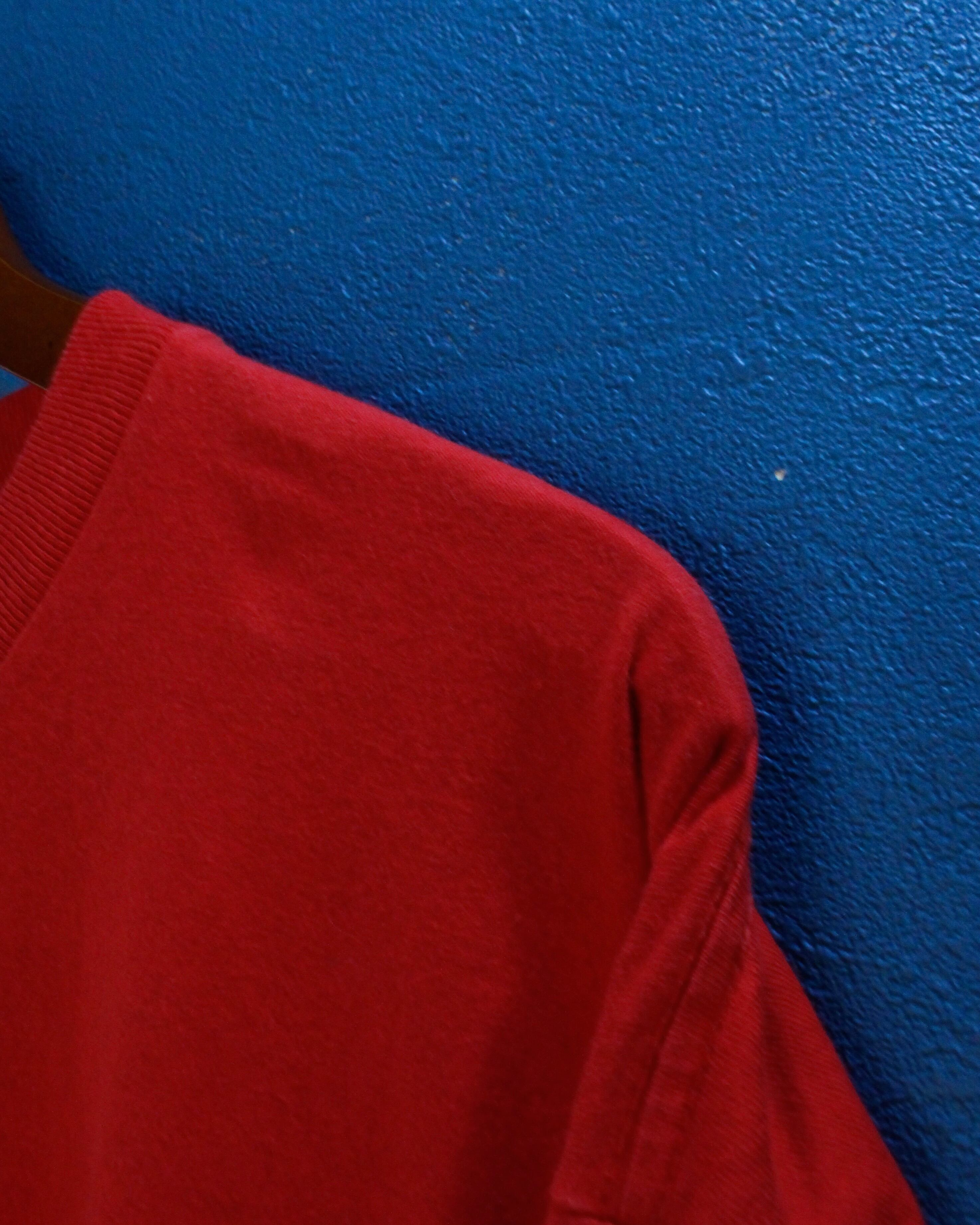 パリッとした赤にシンプルなプリント