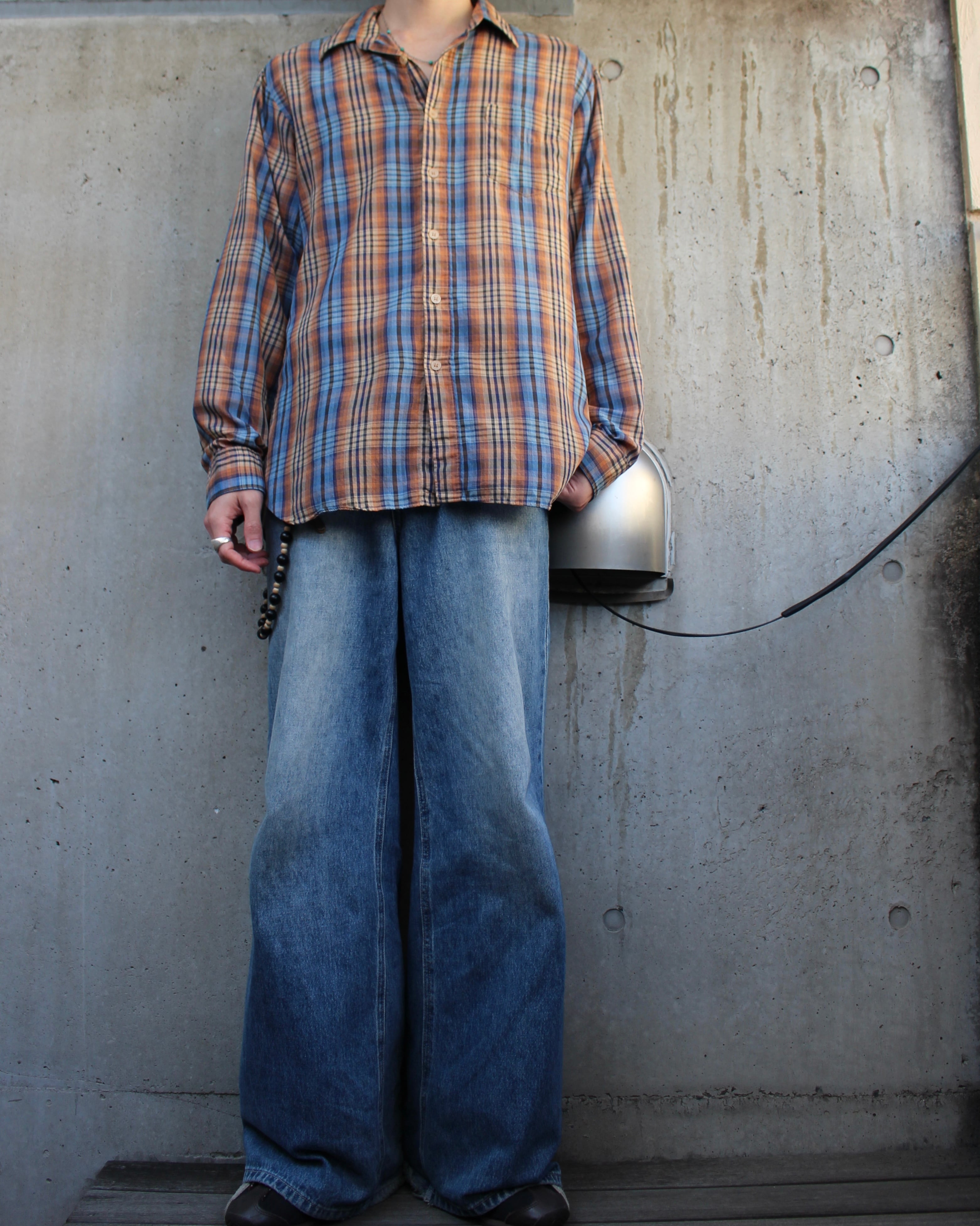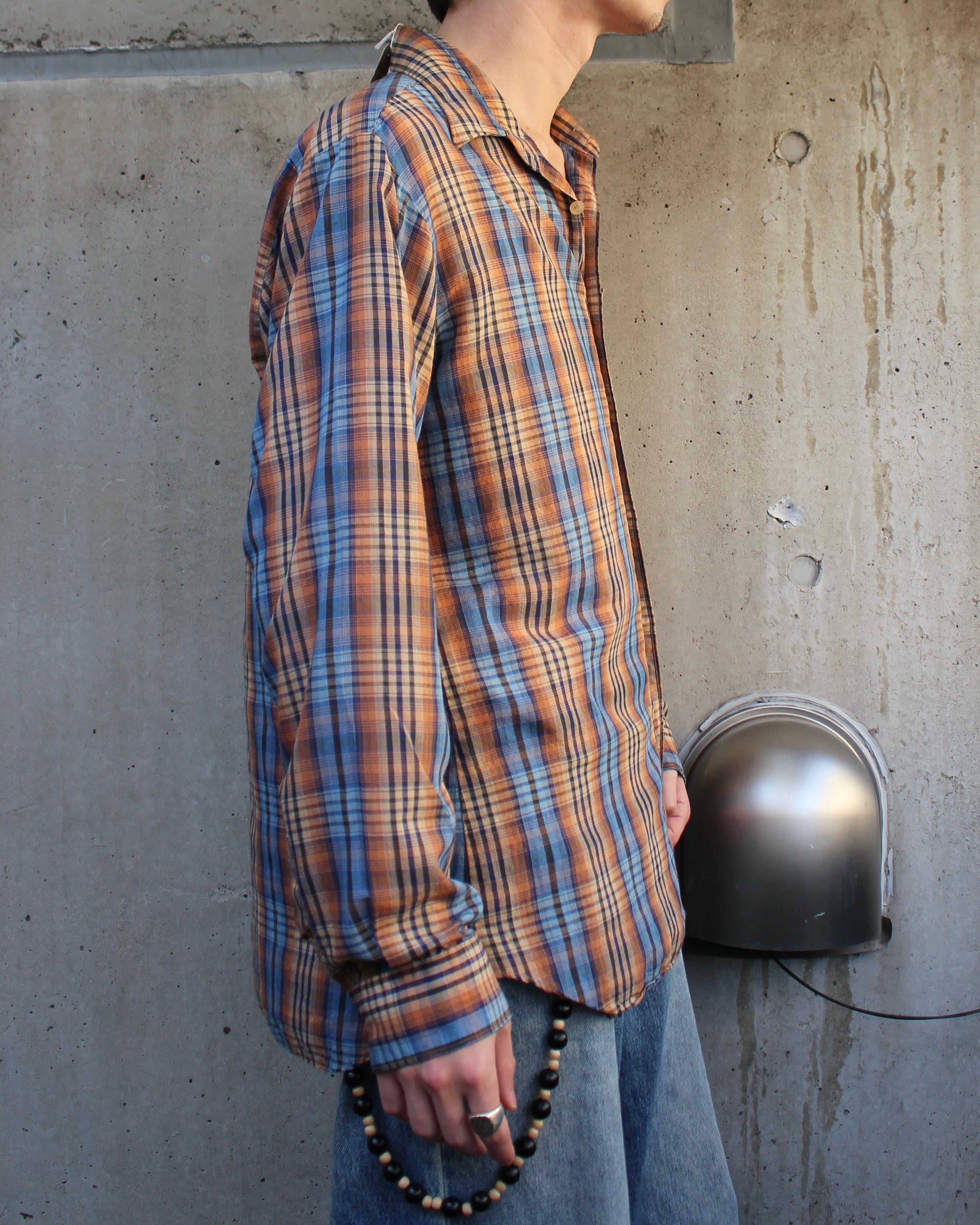薄手コットン混紡のチェックシャツ