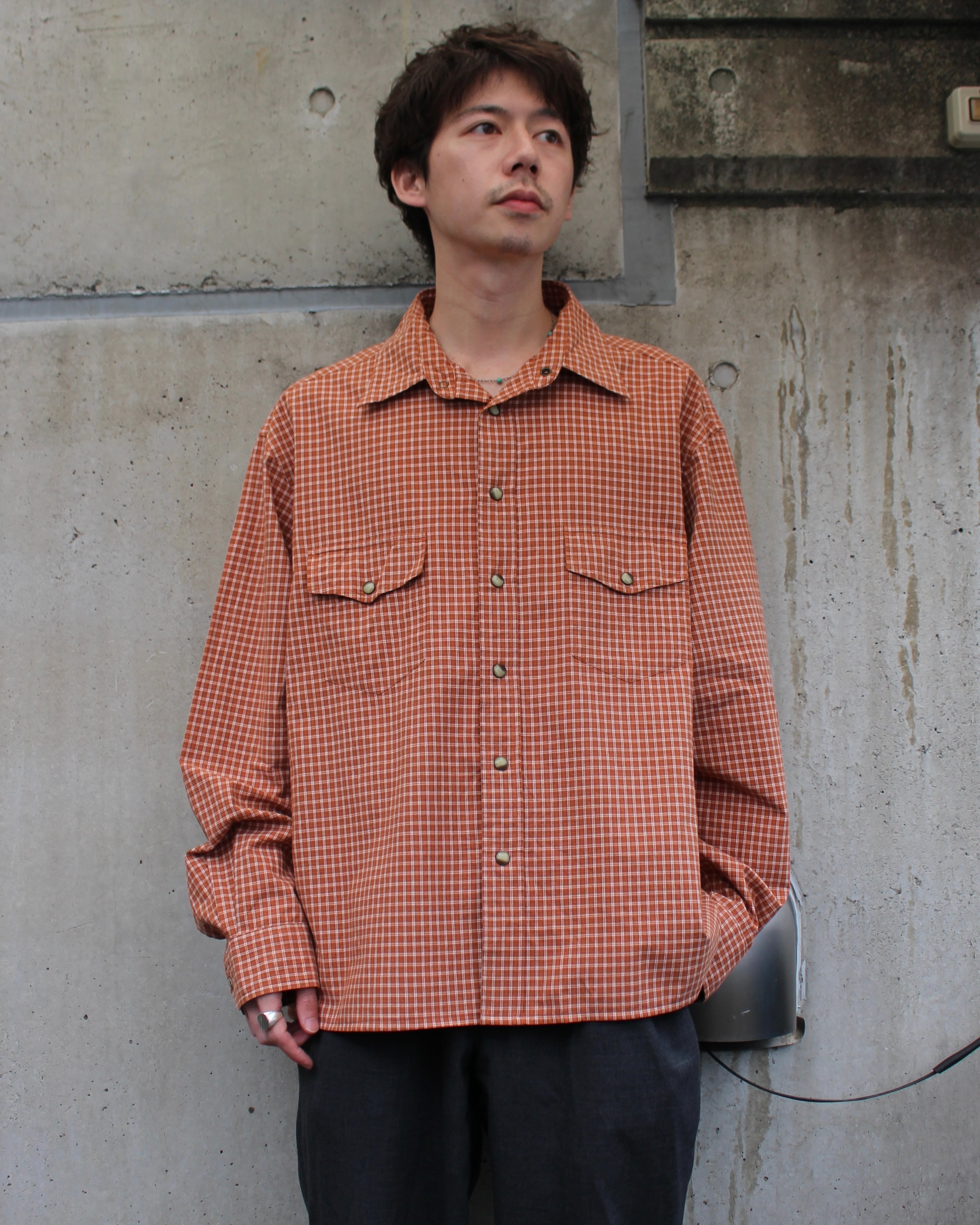 ボックスオレンジチェックシャツ