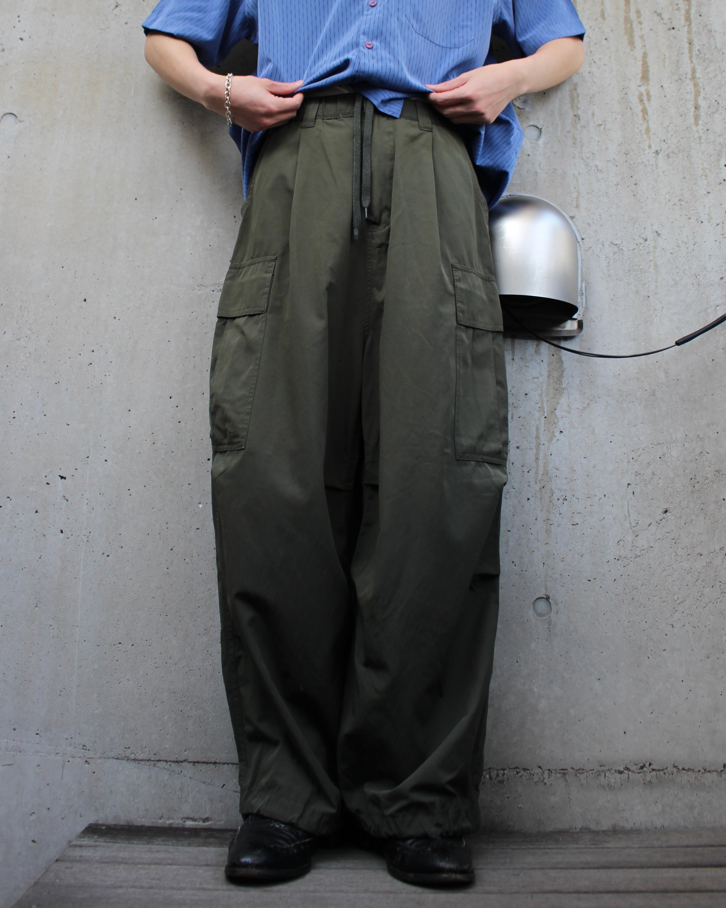 ワイドシルエットのナイロンカーゴパンツ