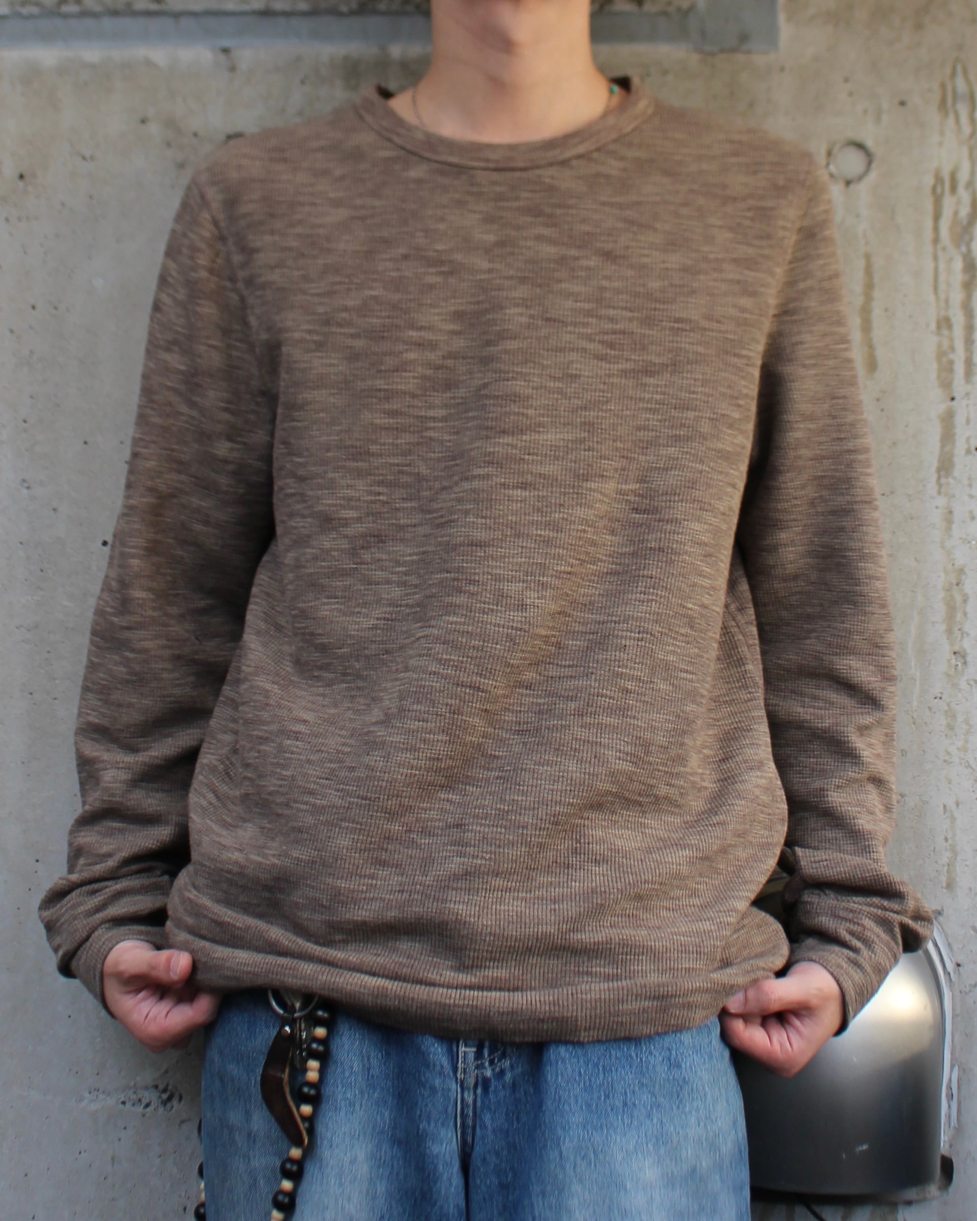 霜降りライトブラウンのサーマルロンT